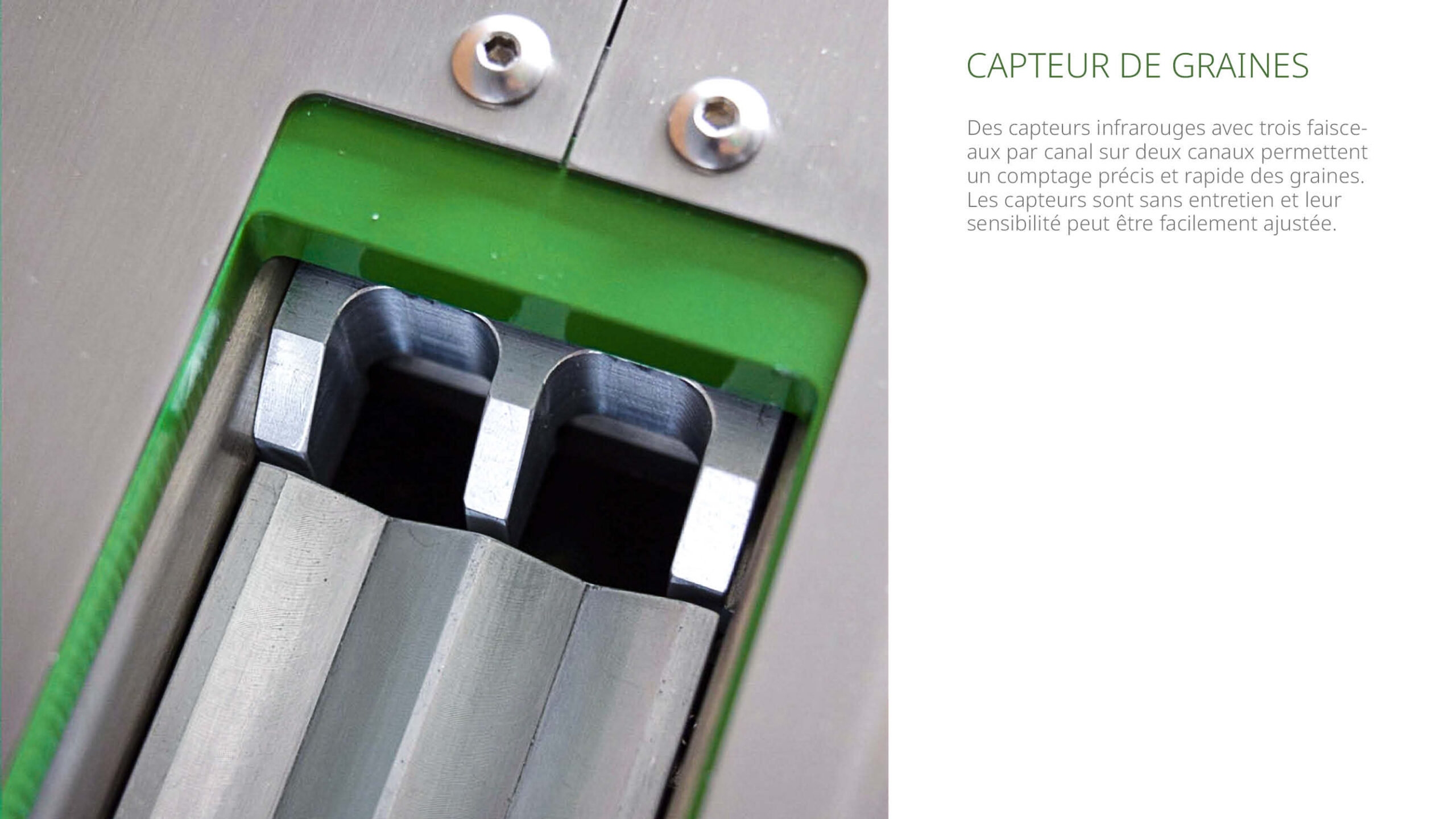 - Réglages personnalisables permettant le comptage de toutes les tailles de semences