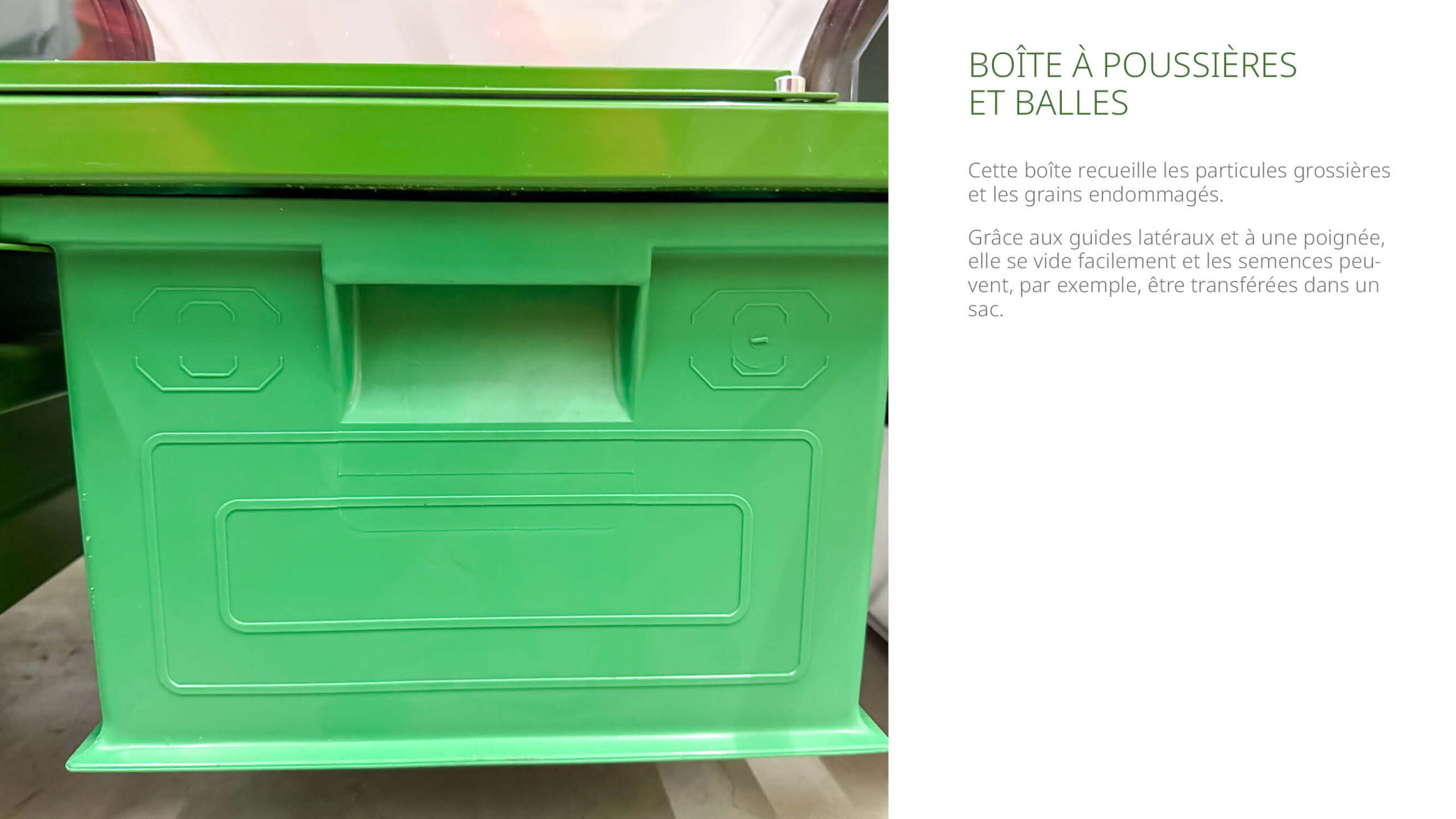 | Boîte 1 | Récupération des grains |